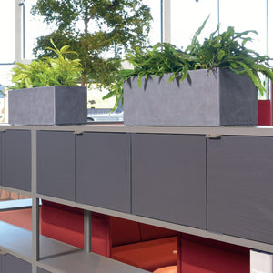 Strong Clay Planters are elegant designs made with a natural clay composite. The natural clay composite is made even more robust with an embedded fiber backing. Available in 5 popular shapes — Square, Tall Squares, Rectangles, Cylinders, and Bottom Radius in sizes to fit all popular grow pots. Choose from three natural finishes — Grey Rock (GR), White Sky (WS), or Brown Earth (BE). Use these pottery planters inside or outdoors.